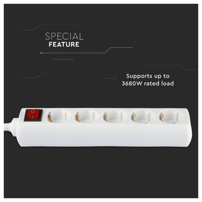 V-TAC Πολύπριζο σούκο με καλώδιο 1.5m με 5 εξόδους σούκο σε λευκό σώμα με διακόπτη 8766