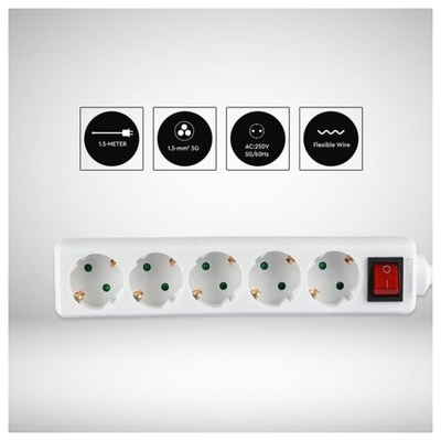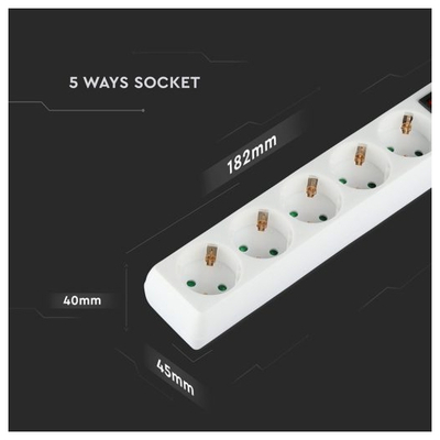 V-TAC Πολύπριζο 5 Θέσεων με 3×1,5mm και 1,5m Καλώδιο Άσπρο 8758