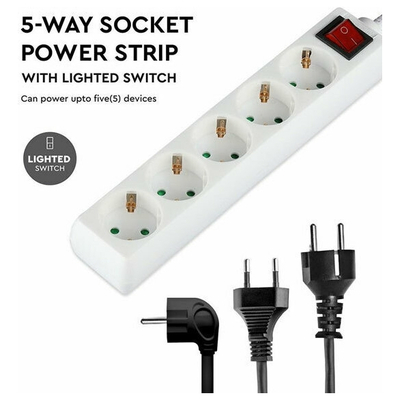 V-TAC Πολύμπριζο Σούκο Λευκό 6 Θέσεων με 5m Καλώδιο και Διακόπτη 8769