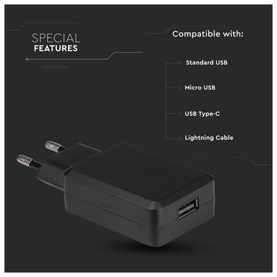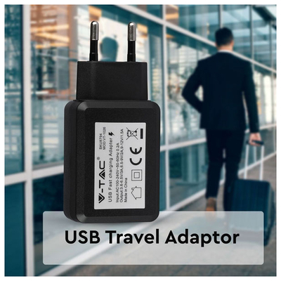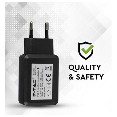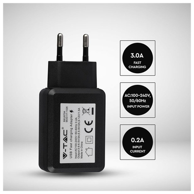 V-TAC Φορτιστής – Αντάπτορας Ταξιδιού Fast Charge USB Μαύρος 8794