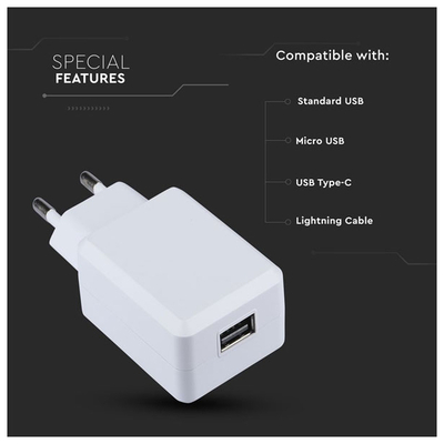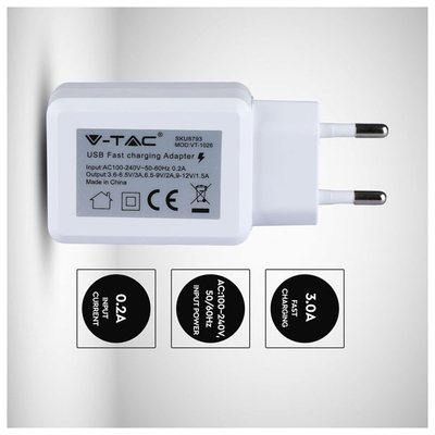 V-TAC Φορτιστής – Αντάπτορας Ταξιδιού Fast Charge USB Άσπρος 8793