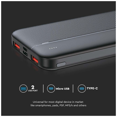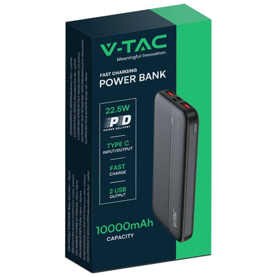 V-TAC 7833 Power Bank 10000mAh με Θύρα USB-A και Θύρα USB-C Μαύρο