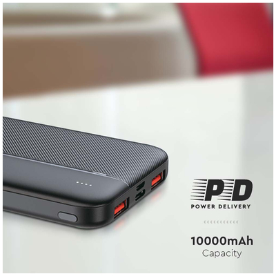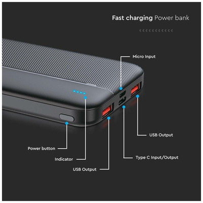 V-TAC Power Bank 10000mAh με Θύρα USB-A και Θύρα USB-C Μαύρο