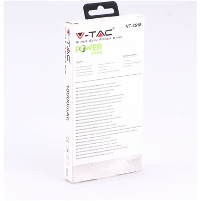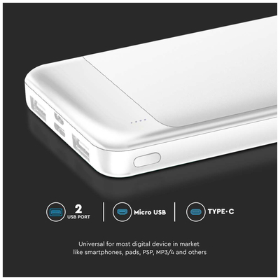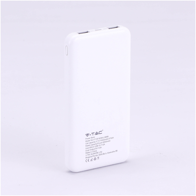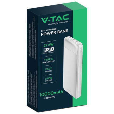 V-TAC 7834 Power Bank 10000mAh με Θύρα USB-A και Θύρα USB-C Λευκό