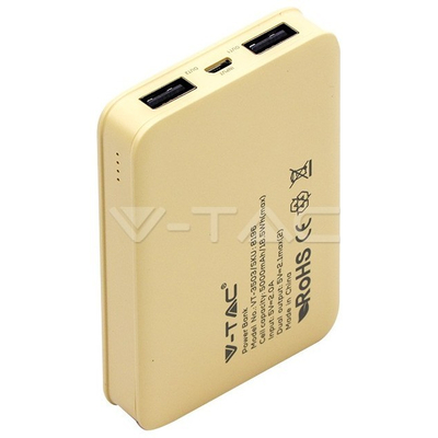 Φορτιστής Μπαταριά Power Bank 5000mAh με δύο Θύρες USB Χρώμα Κίτρινο