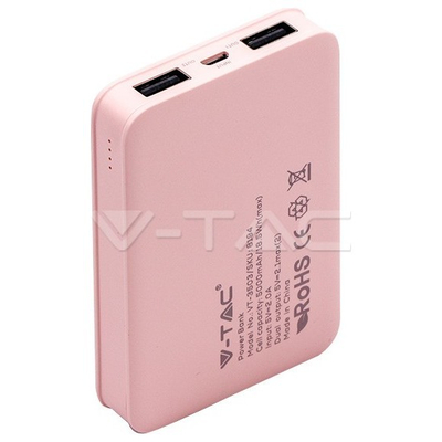 Φορτιστής Μπαταριά Power Bank 5000mAh με δύο Θύρες USB Χρώμα Ροζ