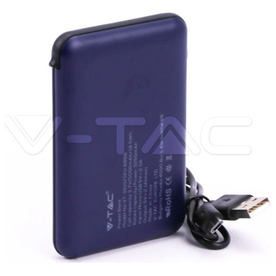 Φορτιστής Μπαταριά Power Bank 5000mAh με LED Ενδείξεις USB και ενσωματωμένο Μαύρο καλώδιο Χρώμα Μπλε 8868
