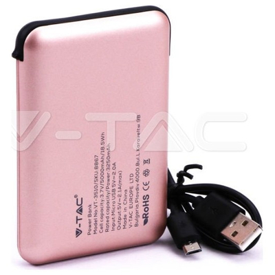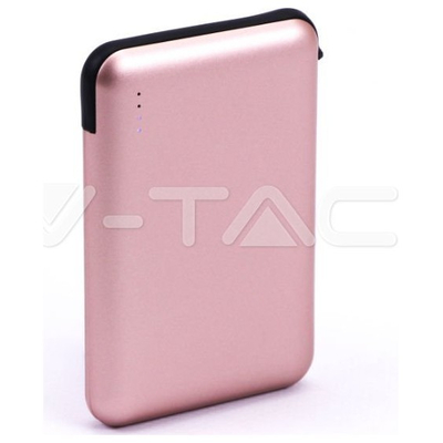 Φορτιστής Μπαταριά Power Bank 5000mAh με LED Ενδείξεις USB και ενσωματωμένο μαύρο καλώδιο Χρώμα Ροζ 8867