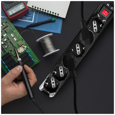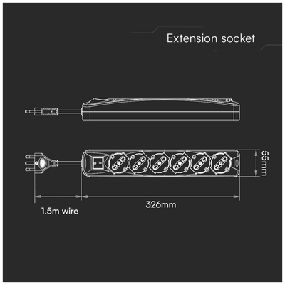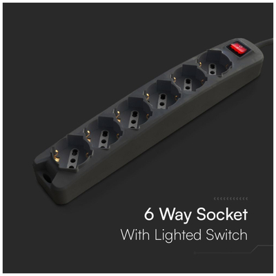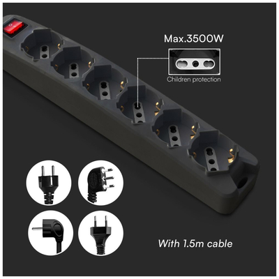 V-TAC Πολύμπριζο με 6 υποδοχές, φωτεινό κεντρικό διακόπτη και καλώδιο 1.5m