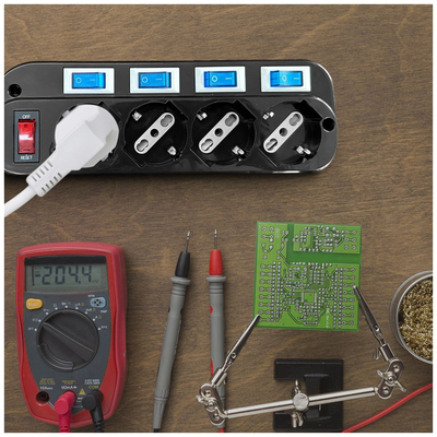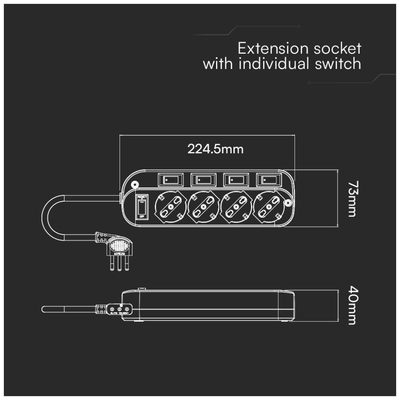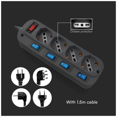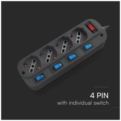 V-TAC πολύμπριζο με 4 υποδοχές 10/16A 2P+E Two-pass/Schuko 45° και 4 ανεξάρτητους διακόπτες και προστασία υπερφόρτωσης 3500W