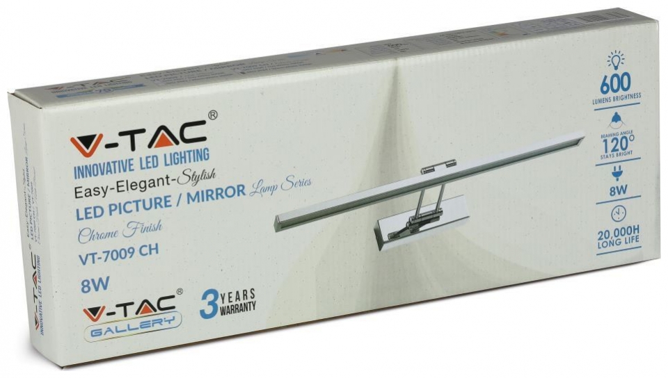 Φωτιστικό V-TAC Πίνακα Καθρέπτη 8W Χρώμιο Θερμό Λευκό