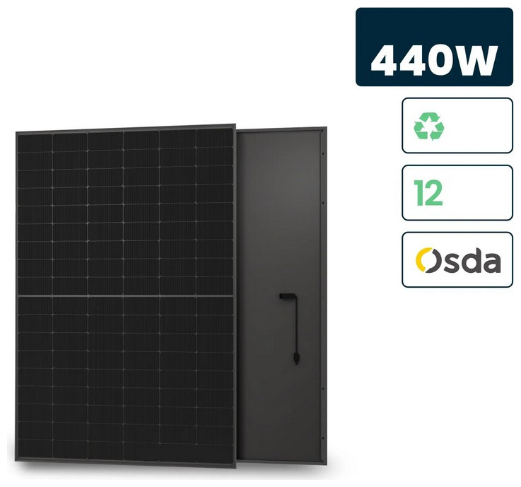 Το V-TAC SKU 12351 (ODA440-27V-MH) είναι ένα φωτοβολταϊκό πλαίσιο μονοκρυσταλλικού ασημένιου πλαισίου 440W Tier-1 με τεχνολογία N-Type TOPCon από τη σειρά OSDA Solar (AUSTA). Σχεδιασμένο για να προσφέρει υψηλή απόδοση ακόμη και σε δύσκολες συνθήκες, εγγυάται εξαιρετική απόδοση χάρη στην πυκνότητα ισχύος 225W/m² και τις διαστάσεις 1722×1134×30mm, ιδανικά για οικιακά, εμπορικά και βιομηχανικά συστήματα.
