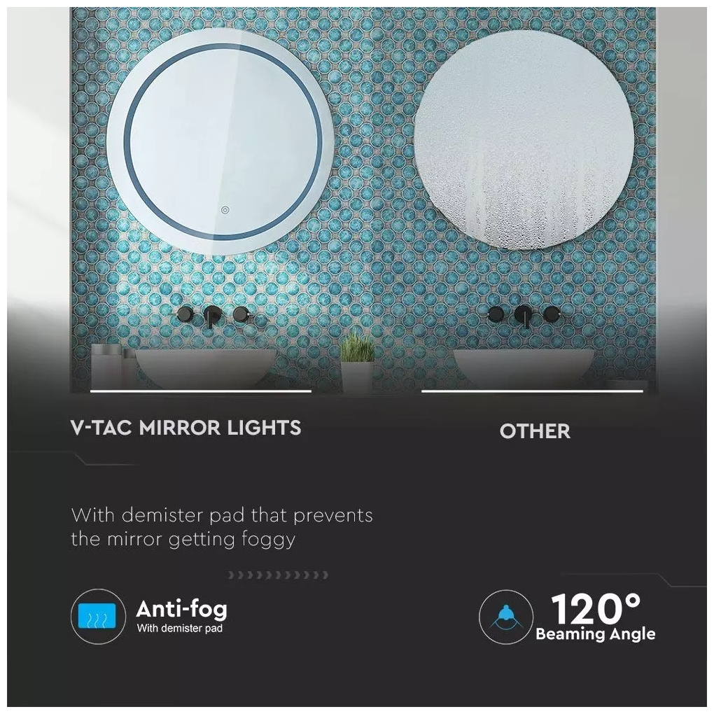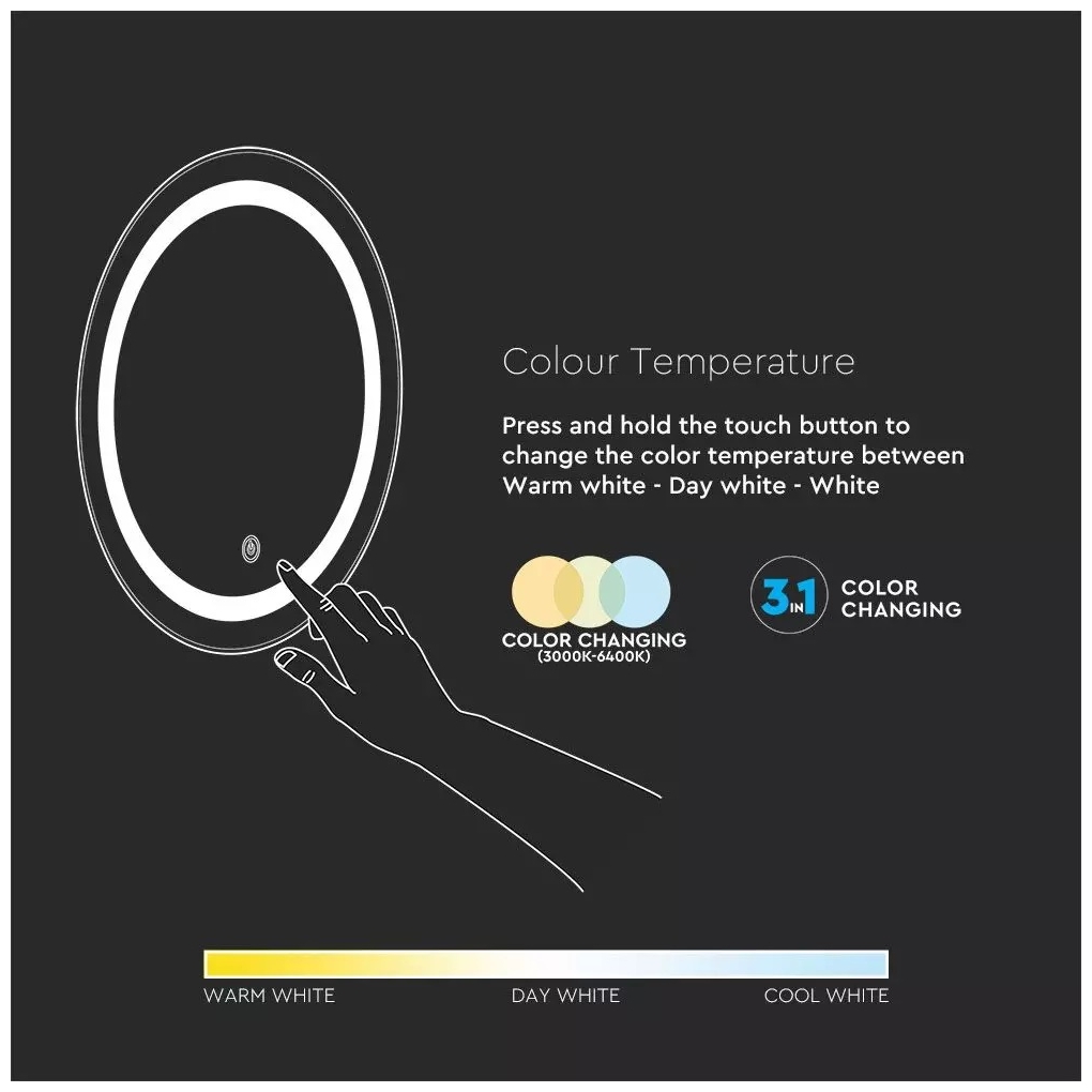 LED Καθρέφτης αντιθαμβωτικός στρογγυλός 25W 3 σε 1 με διακόπτη αφής 40491