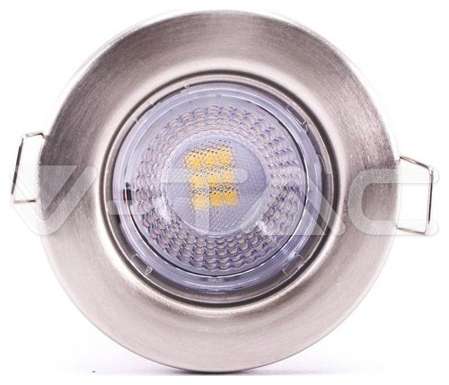 LED V-TAC Φωτιστικό Σποτ 5W Downlight Σατινέ Νίκελ Στρογγυλό SAMSUNG Chip Αδιάβροχο Dimmable Φως Ημέρας