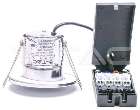 LED V-TAC Φωτιστικό Σποτ 5W Downlight Χρώμιο Στρογγυλό SAMSUNG Chip Αδιάβροχο Dimmable Θερμό Λευκό