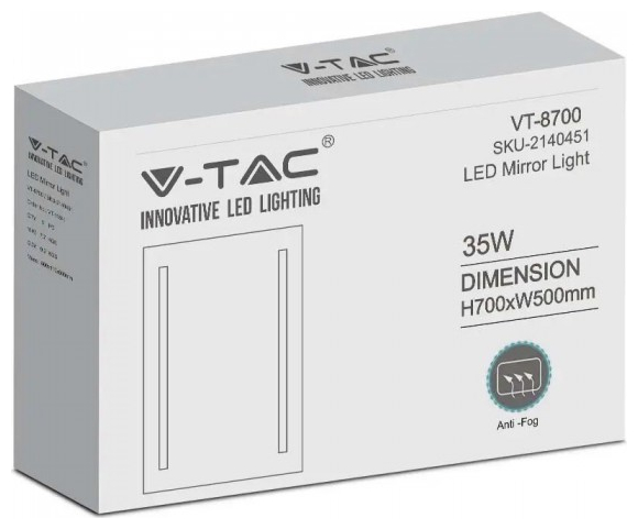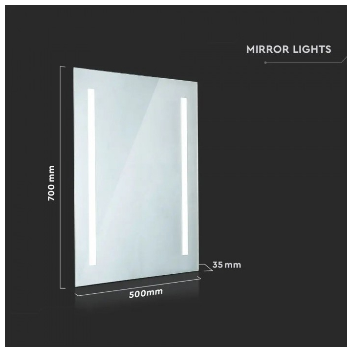 V-TAC 40451 Ορθογώνιος Καθρέπτης Μπάνιου Led από Μέταλλο 50x70cm
