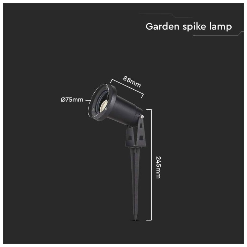 V-TAC Αδιάβροχο Μίνι Φωτιστικό Κήπου Αλουμινίου για GU10 LED IP65 Χωνευτό με Καρφί Μαύρο Σώμα 10372