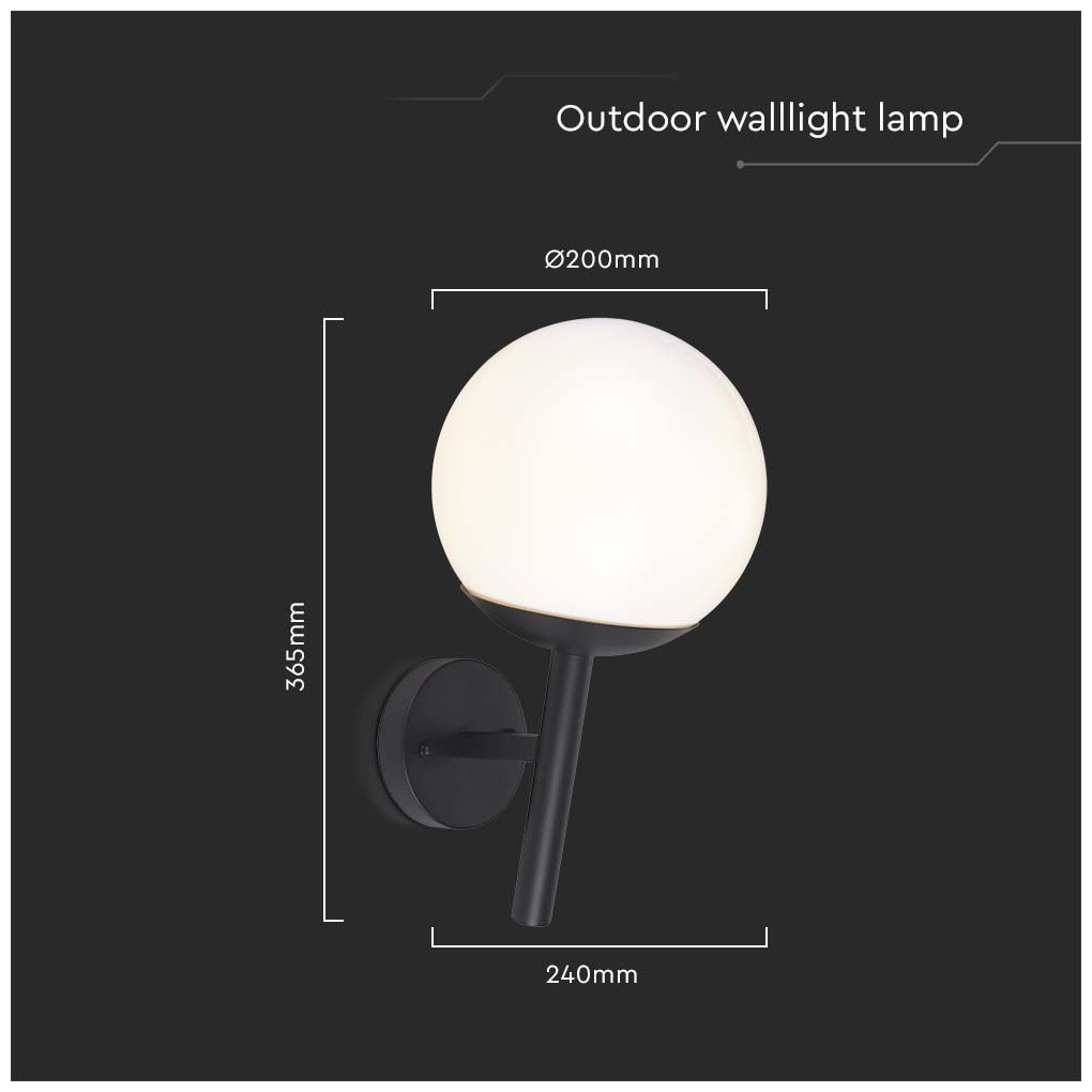 V-TAC Επιτοίχιο Φαναράκι Εξωτερικού Χώρου E27 σε Μαύρο Χρώμα 11824