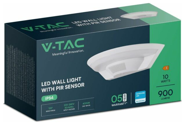 V-TAC Επιτοίχιο Φωτιστικό LED 10W Με Αισθητήρα PIR SAMSUNG CHIP 3IN1 IP54 Λευκού Χρώματος