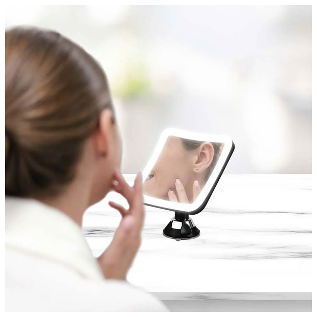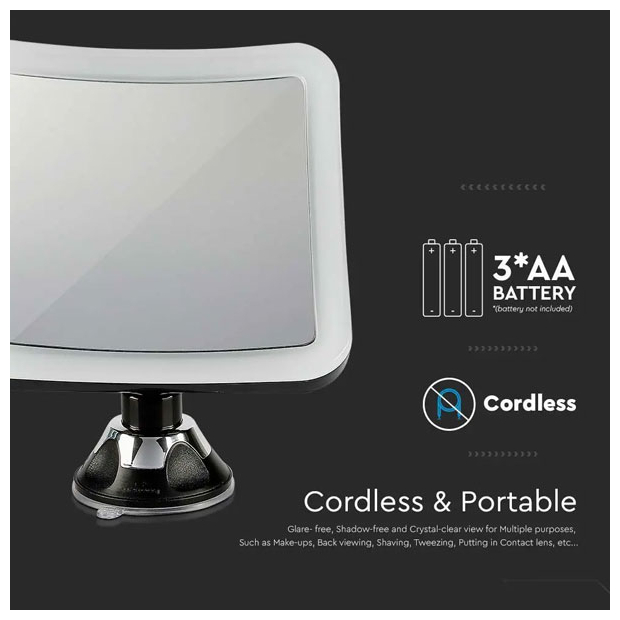 V-TAC Φωτιστικό Καθρέπτης LED 3.2W Τετράγωνο Φορητό Μπαταρίας με Βεντούζα και Διακόπτη 30lm 120° IP44 Ψυχρό Λευκό Μαύρο Σώμα 6630