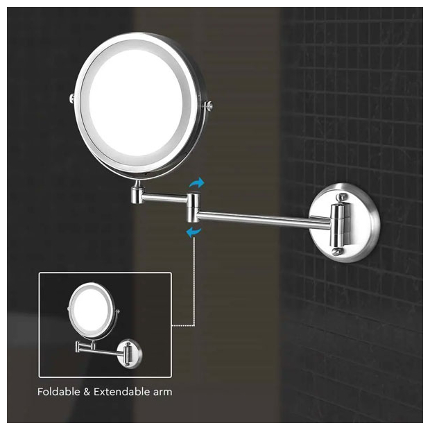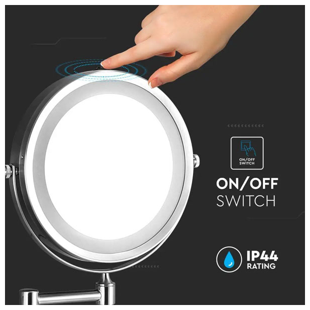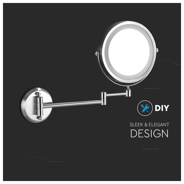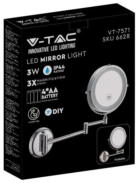 V-TAC Φωτιστικό Καθρέπτης LED 3W Στρογγυλό Φορητό Επιτοίχιο 30lm 150° IP44 Μπαταρίας με Διακόπτη Ψυχρό Λευκό Νίκελ Σώμα 6628