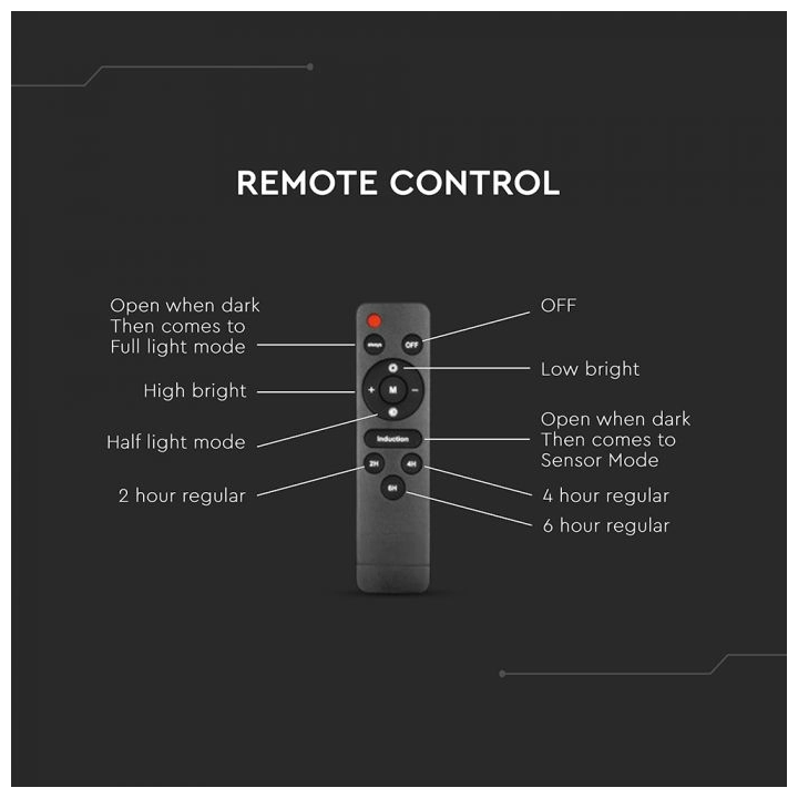 Εξοπλισμένο με αισθητήρα μικροκυμάτων (radar) και τηλεχειριστήριο dimmer, το φωτιστικό ενεργοποιείται μόνο όταν ανιχνεύει κίνηση, βελτιώνοντας την ενεργειακή απόδοση. Εκπέμπει ψυχρό λευκό φως 6000K με γωνία φωτισμού 120°, ιδανικό για εξωτερικούς χώρους.