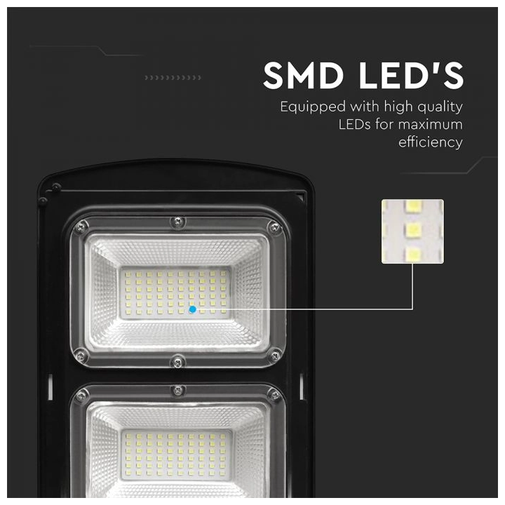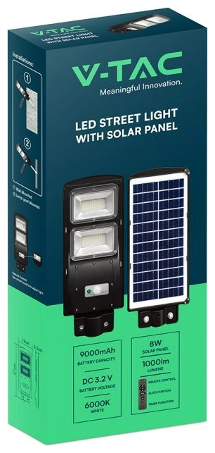 Η LED armatura οδικής ασφάλειας V-TAC 8W συνδυάζει φωτεινότητα 1000 lumen με εξοικονόμηση ενέργειας μέσω του ενσωματωμένου ηλιακού πάνελ. Η μπαταρία LiFePO4 9000 mAh παρέχει 12-15 ώρες αυτονομία με πλήρη φόρτιση σε 4-6 ώρες, επιτρέποντας αυτόνομη και αξιόπιστη λειτουργία χωρίς εξωτερική παροχή ρεύματος.
