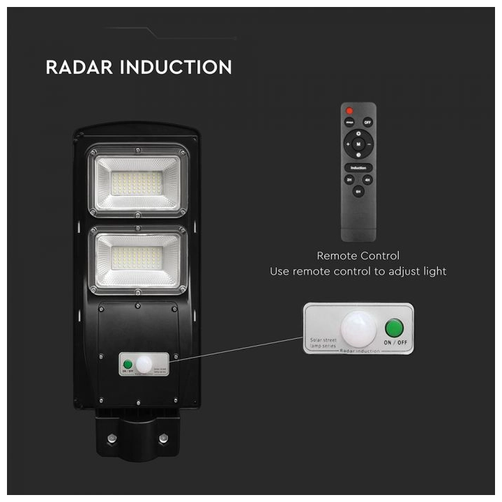 Εξοπλισμένη με αισθητήρα κίνησης μικροκυμάτων (radar) και τηλεχειριστήριο dimmer, η συσκευή ενεργοποιείται αυτόματα όταν εντοπίσει κίνηση, εξοικονομώντας ενέργεια. Προσφέρει λευκό ψυχρό φως 6000K με γωνία φωτισμού 120° για ευρεία κάλυψη σε εξωτερικούς χώρους.