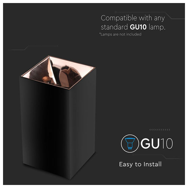 V-TAC Φωτιστικό Σποτ Οροφής για GU10 LED IP20 74x74x140mm Πλαστικό Τετράγωνο Μαύρο-Ροζ Χρυσό Σώμα 8993