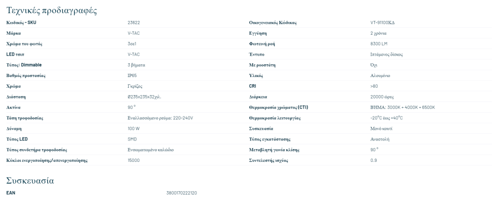 V-TAC Industrial Bell 90° με διακόπτη εναλλαγής CCT 3in1 3000K-6500K IP65 - SKU 23622