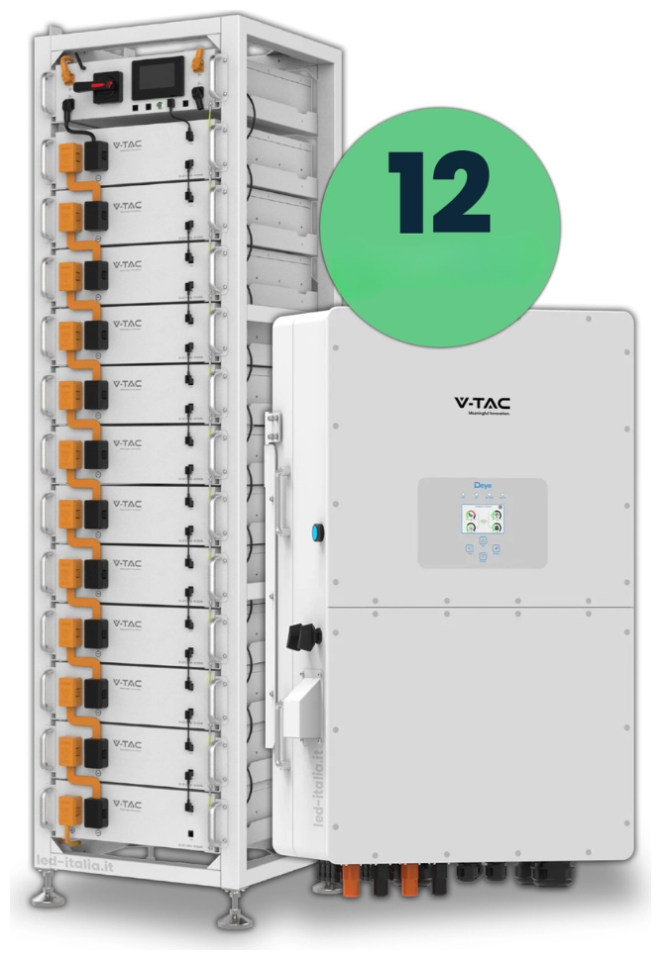 Το V-TAC KIT Υψηλής Τάσης με υβριδικό τριφασικό inverter 50kW Deye και σύστημα αποθήκευσης 61.44kWh LFP αποτελεί λύση επαγγελματικού επιπέδου για ενεργειακή αυτονομία και υψηλή απόδοση. Περιλαμβάνει rack μπαταριών υψηλής τάσης, HV BMS, καλώδια σύνδεσης και armadio rack, καλύπτοντας ολοκληρωμένα τις απαιτήσεις ενός βιομηχανικού ή μεγάλου εμπορικού φωτοβολταϊκού συστήματος.