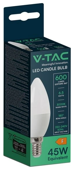 Η V-TAC λάμπα LED κεράκι E14 6.5W αποδίδει φυσικό λευκό φως 4000K, ιδανικό για κάθε εσωτερικό χώρο όπως σαλόνια, υπνοδωμάτια, ξενοδοχεία ή επαγγελματικά γραφεία. Με γωνία φωτισμού 180° και υψηλό CRI >80, προσφέρει φωτεινότητα με φυσική χρωματική απόδοση, χωρίς τρεμόπαιγμα ή παραμορφώσεις.