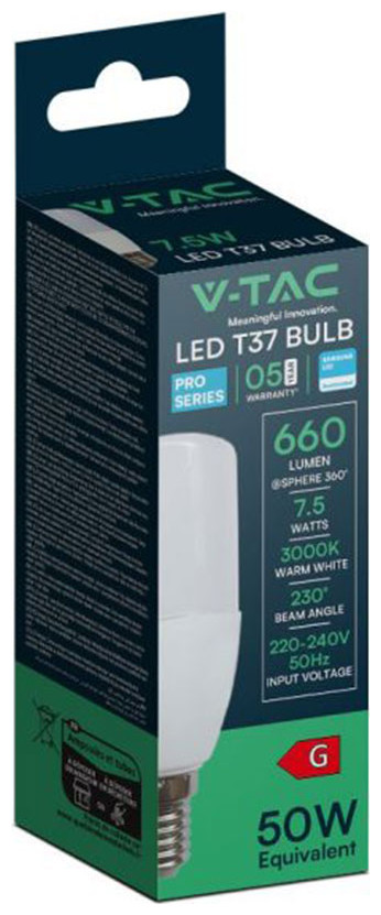 V-TAC Λάμπα Led E14 T37 7.5W 230V 230° 660lm IP20 Samsung Chip Ζεστό Λευκό 21267