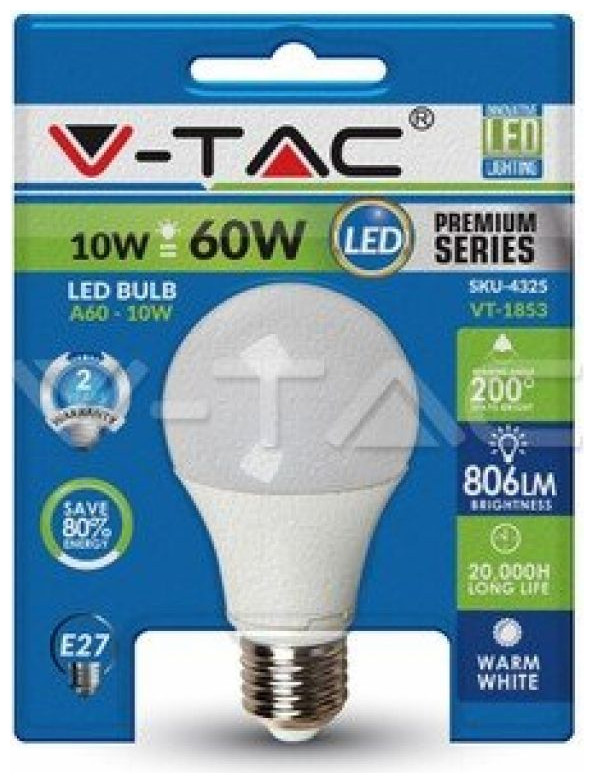 V-TAC Λαμπτήρας E27 10W A60 2700K