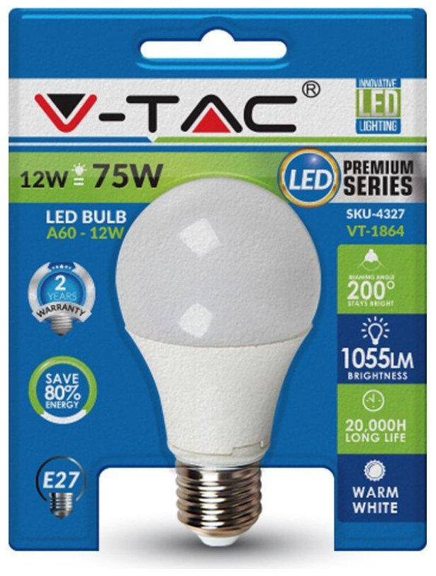 V-TAC Λαμπτήρας E27 12W A60 2700K