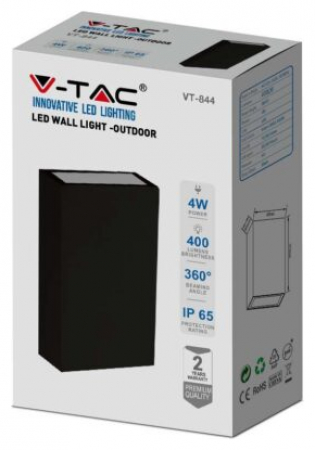 V-TAC LED αδιάβροχη απλίκα 4W IP65 3000K θερμό λευκό με μαύρο σώμα ορθογώνια V-TAC SKU: 218561