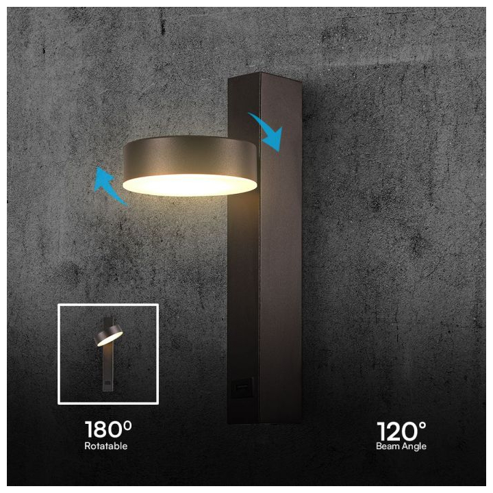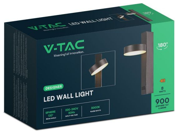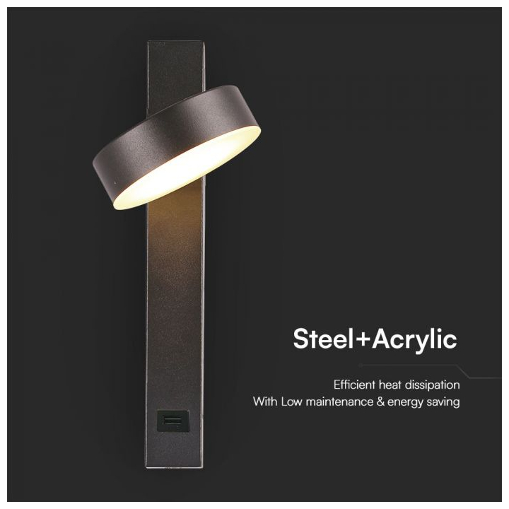 V-TAC LED Φως τοίχου 8W με λειτουργία USB 3000K ακρυλικό μαύρο