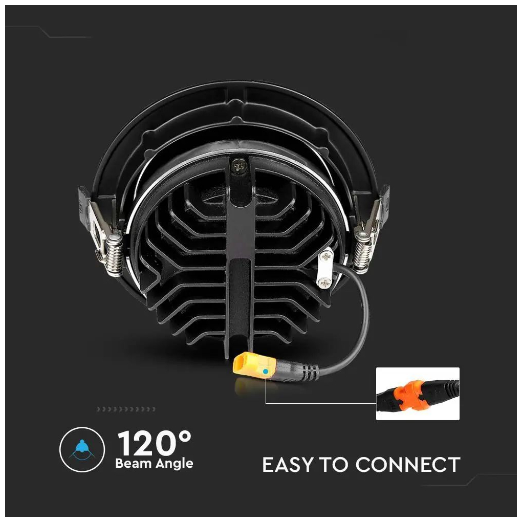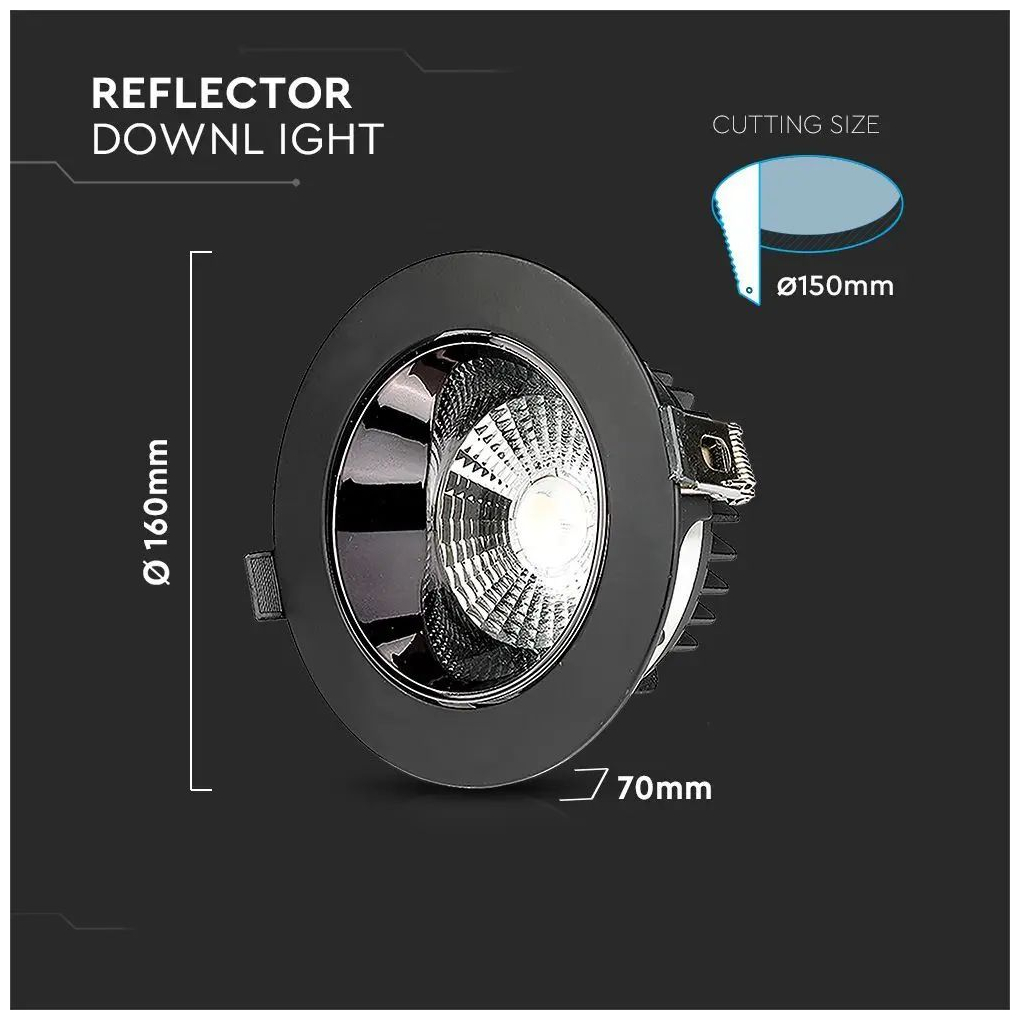 V-TAC LED φωτιστικό οροφής χωνευτό στρογγυλό Samsung COB reflector ψυχρό λευκό 20W 6400K με μαύρο σώμα SKU: 2120056