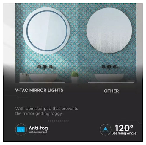 V-TAC LED Καθρέφτης αντιθαμβωτικός στρογγυλός 25W 3 σε 1 με διακόπτη αφής VT-8602 40491