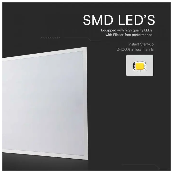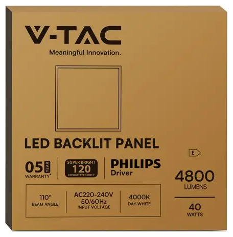 Το πάνελ LED V-TAC 40W παρέχει φωτεινότητα 4800 lumen με ενεργειακή απόδοση 120 lm/W. Το ψυχρό λευκό φως 6500K δημιουργεί έντονο και καθαρό φωτισμό, κατάλληλο για επαγγελματικούς χώρους και γραφεία.