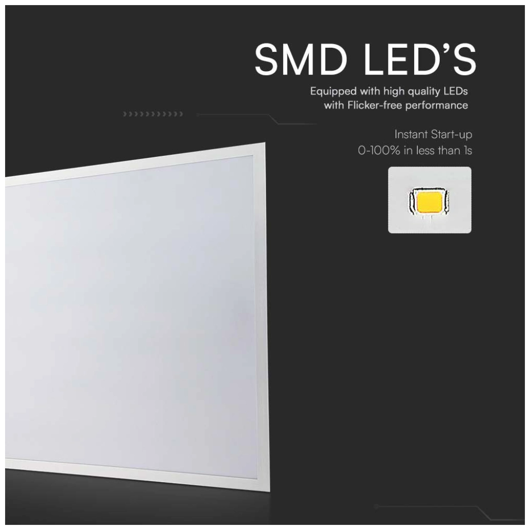 Το τετράγωνο πάνελ LED 36W της V-TAC αποδίδει 4320 lumen και προσφέρει έντονο ψυχρό λευκό φως 6500K, ιδανικό για χώρους γραφείων, εμπορικές εγκαταστάσεις, φαρμακεία ή βιομηχανικά περιβάλλοντα. Με απόδοση 120 lm/W και γωνία φωτισμού 120°, εξασφαλίζει πλήρη και ομοιόμορφη κάλυψη φωτισμού χωρίς σκιές.