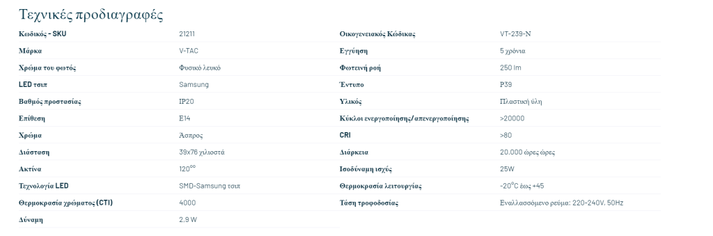 V-TAC PRO LED Τσιπ λαμπτήρα Samsung E14 2.9W R39 4000K - SKU 21211
