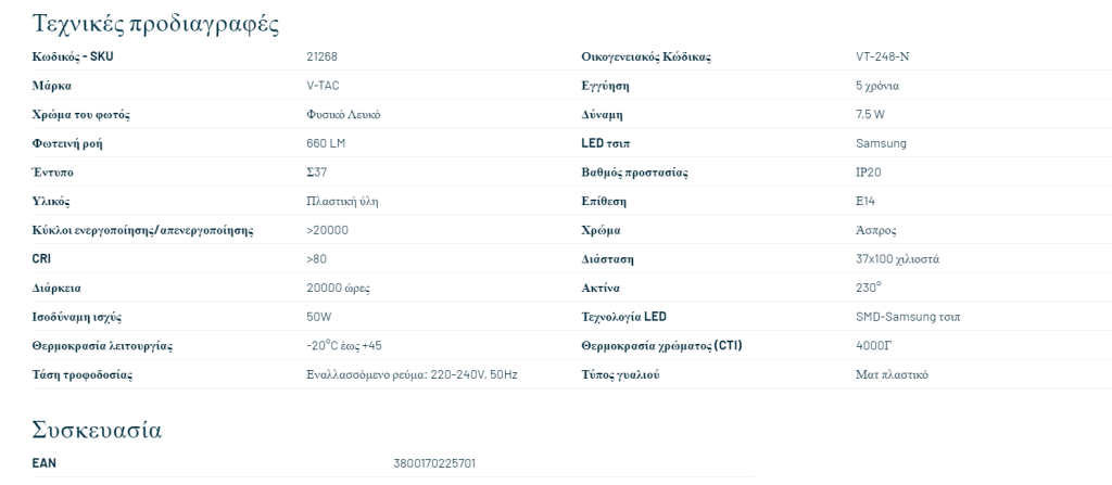 V-TAC PRO LED τσιπ λαμπτήρα Samsung E14 7.5W T37 4000K - SKU 21268