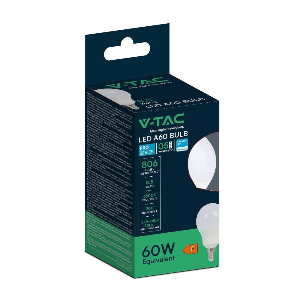 V-TAC PRO LED Τσιπ λαμπτήρα Samsung E14 8.5W A60 3000K - SKU 21114