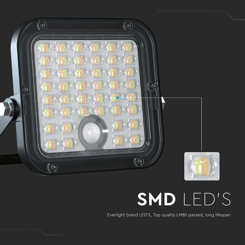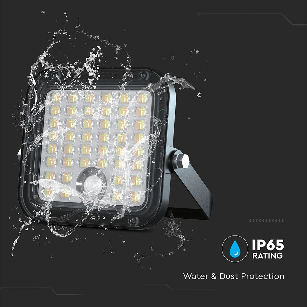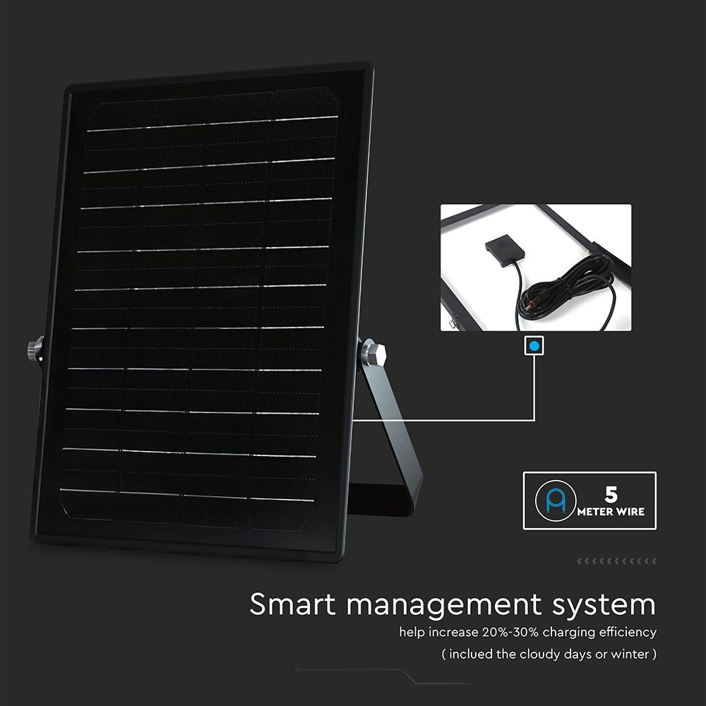 Ο V-TAC Προβολέας LED 10W με ενσωματωμένο ηλιακό πάνελ και μπαταρία LiFePo 3.7V, προσφέρει 1500 lumens φωτεινότητας με δυνατότητα επιλογής μεταξύ φυσικού λευκού (4000K) και ψυχρού λευκού (6000K) φωτός. Αυτό επιτρέπει την προσαρμογή της ατμόσφαιρας ανάλογα με τις ανάγκες σας, καθιστώντας τον ιδανικό για εξωτερικούς χώρους όπως κήπους, αυλές και διαδρόμους.