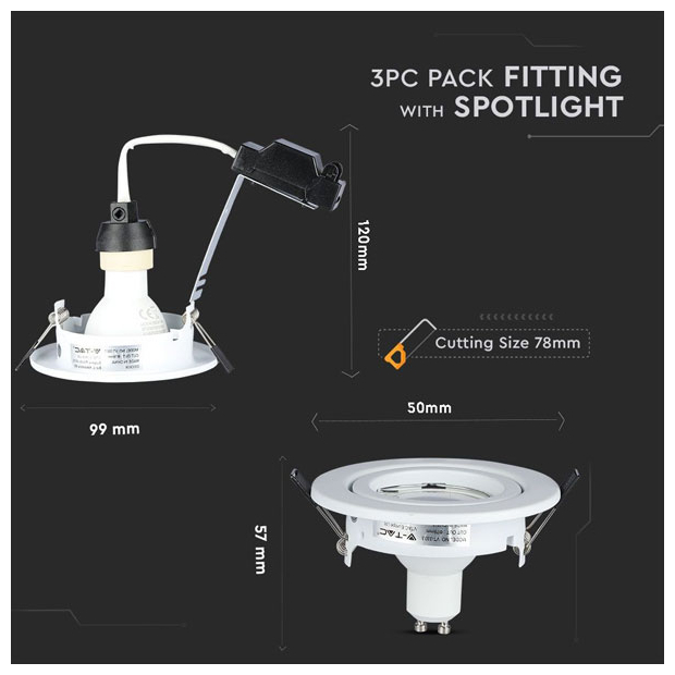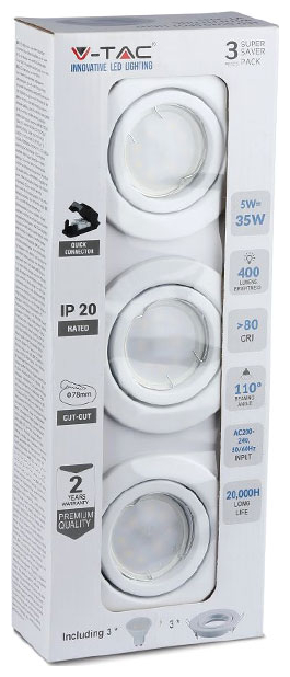 V-TAC Σποτ Led GU10 5W 400lm 110° με Βάση Άσπρο Σώμα Φυσικό Λευκό 3τμχ 8882