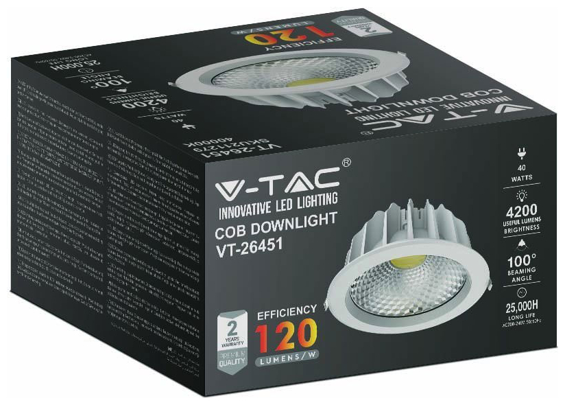 V-TAC Σποτ Οροφής LED REFLECTOR COB 40W 230V 100° 4200lm IP20 Φυσικό Λευκό Άσπρο 211279