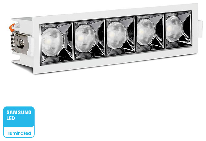 V-TAC Σποτ οροφής LED χωνευτό πενταπλό λευκό σώμα Samsung SMD 12° 5700κ 20W SKU: 979 Τύπος LED SMD ΦΩΤΕΙΝΟΤΗΤΑ 1600 lumens Κατανάλωση 20W EAN 3800157650328 ΘΕΡΜΟΚΡΑΣΙΑ ΧΡΩΜΑΤΟΣ 5700K Γωνία δέσμης 12° Χρώμα σώματος Λευκό ΥΛΙΚΟ Αλουμίνιο Στεγανότητα IP20 (Όχι αδιάβροχο) Dimmable ΟΧΙ PF >0.6 CRI >90 ΤΑΣΗ ΛΕΙΤΟΥΡΓΙΑΣ AC 220-240V, 50Hz ΔΙΑΣΤΑΣΕΙΣ ΧΩΝΕΨΗΣ 200x45mm Εγγύηση 5 χρόνια