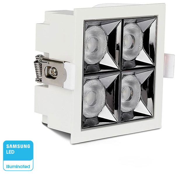 V-TAC Σποτ οροφής LED χωνευτό τετραπλό λευκό σώμα τετράγωνο Samsung SMD 38° 5700κ 16W SKU: 991