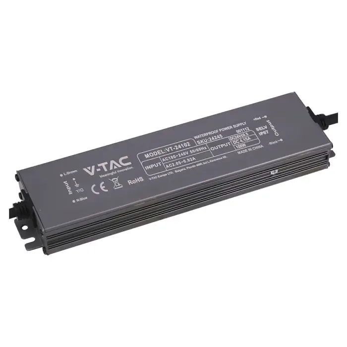 Το τροφοδοτικό LED της V-TAC στα 100W αποτελεί την ιδανική λύση για τη σταθερή τροφοδοσία συστημάτων 24V σε εξωτερικούς ή υγρούς χώρους. Με βαθμό προστασίας IP67, είναι πλήρως αδιάβροχο και ανθεκτικό στη σκόνη, εξασφαλίζοντας απροβλημάτιστη λειτουργία σε ταινίες LED, επιγραφές και αρχιτεκτονικό φωτισμό. Το στιβαρό μεταλλικό του περίβλημα προσφέρει εξαιρετική απαγωγή θερμότητας και προστασία από τις καιρικές συνθήκες.